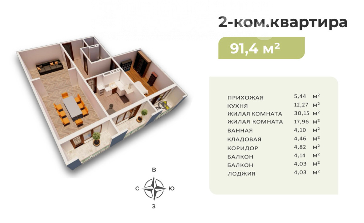 2-комн. кв., 91 м2