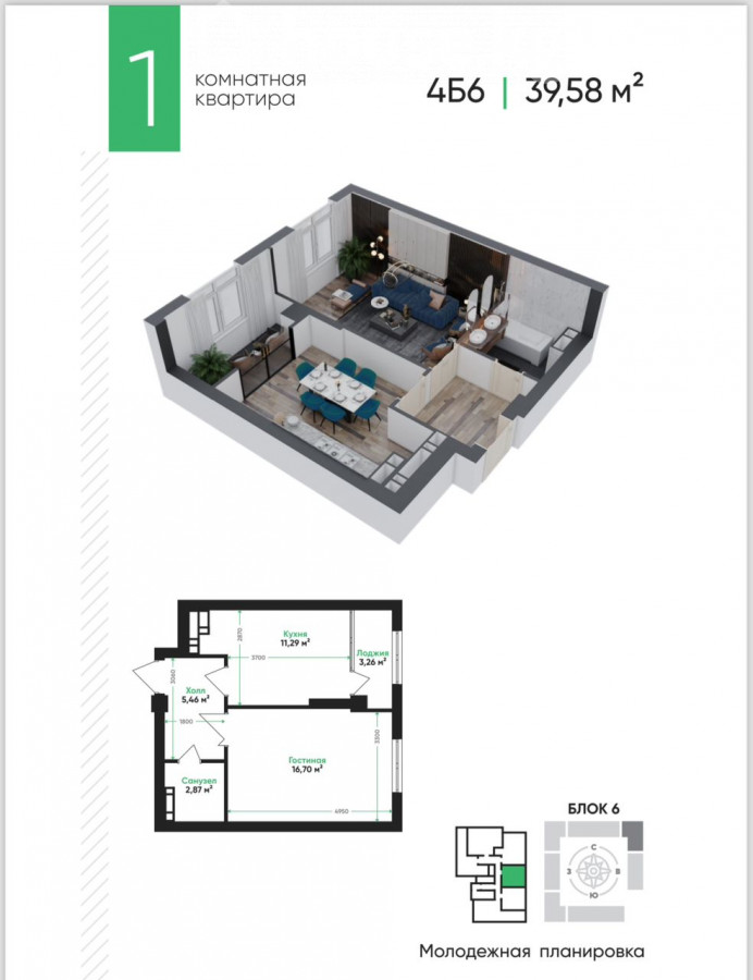 Продается 1 комнатная квартира жк Эсентай адрес Аю гранд Псо летом 2026 площадь 40 кв.м 11 этаж из 12 6 блок цена 49000$ ID: 84444