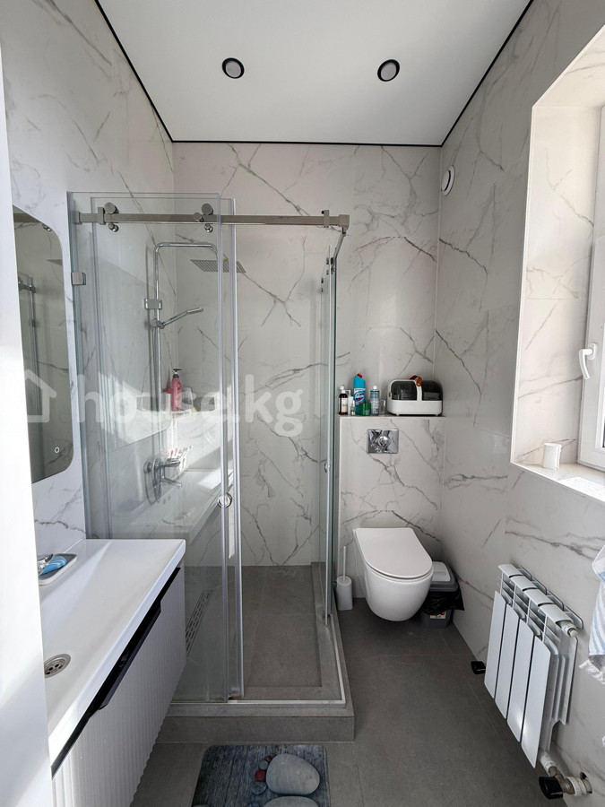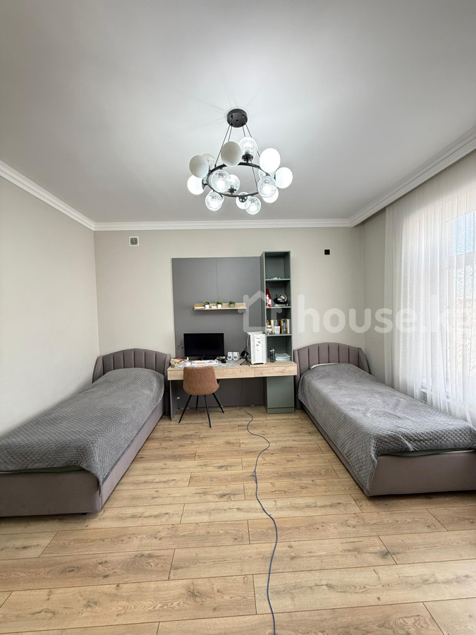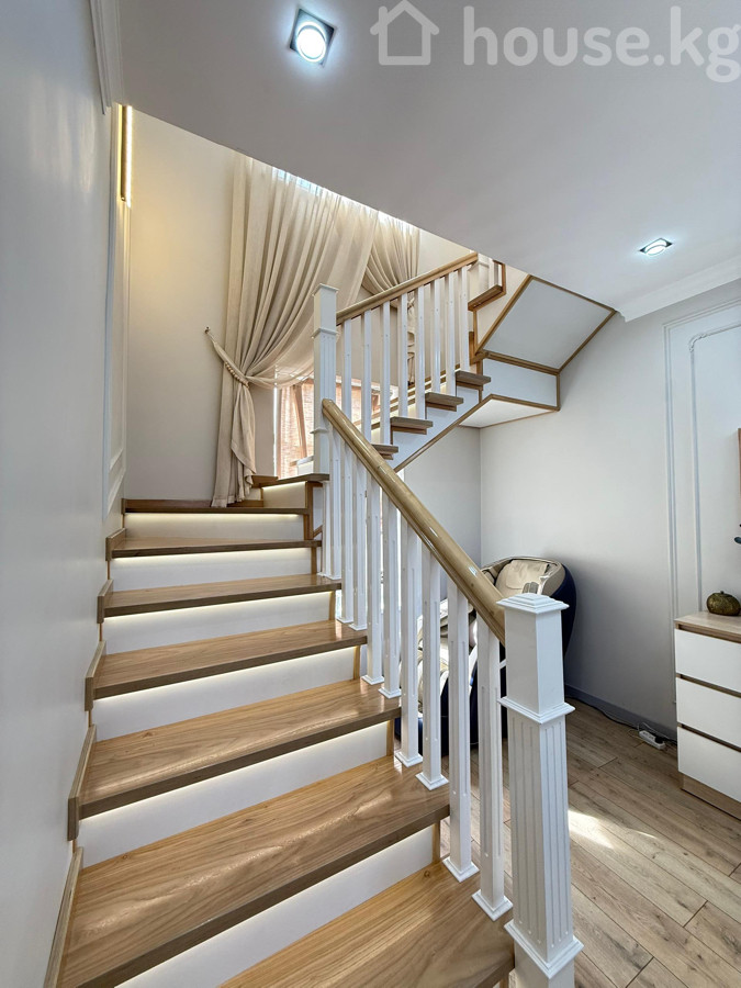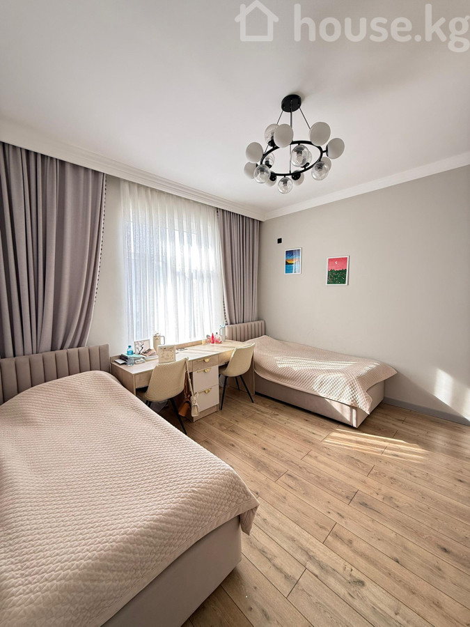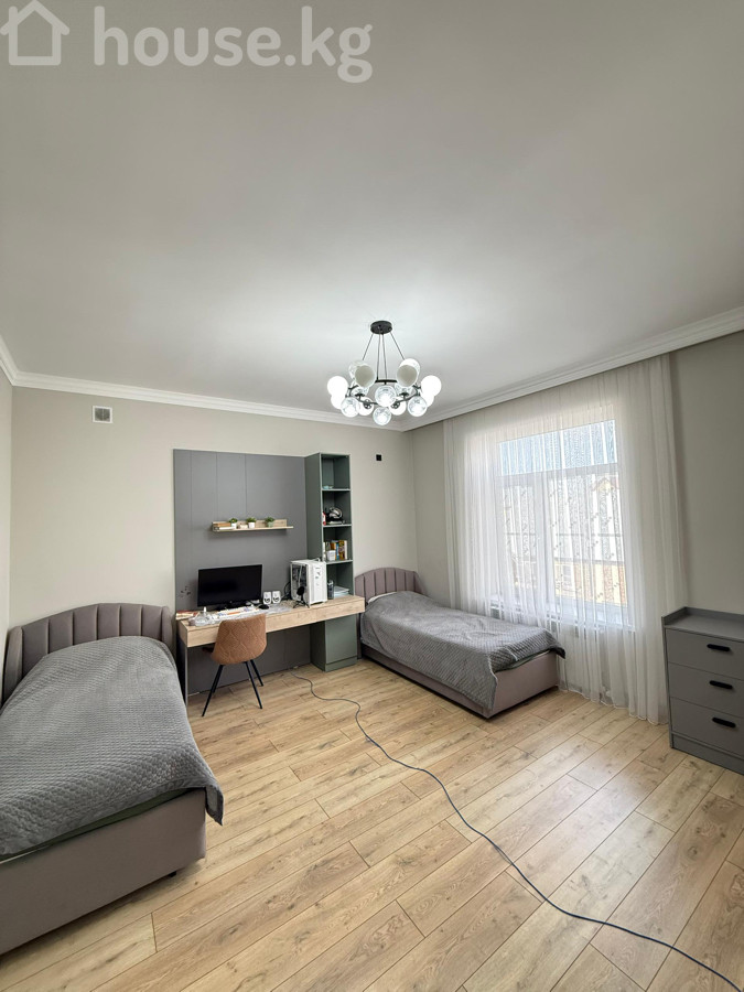 Продаётся шикарный дом с дизайнерским ремонтом + мебель и техника! Отличная Локация: ж/м Кок-Жар (Кулмурзаева/Шоокум) 1 этаж: тамбур, холл, родительская спальня, санузел, гостиная, кухня 2 этаж: холл, гардероб, санузел, мастер спальня со своим санузлом и гардеробом, детская комната, спальня! Имеется летняя кухня, очок-кана, тапчан! Площадь: 200 м² Участок: 4 соток (Красная книга) Дом 2024 года! Почти всё остаётся! Коммуникации: газификация, центральная канализация, свет, вода Отопление газовое: 1 этаж: водяные полы 2 этаж: радиаторы Дом огорожен, по периметру видеонаблюдение! Во двор помешается 6-7 машин (под навес 2 машины) Развитая инфраструктура: рядом школа #88, детский сад #182 и много других частных детсадов, Глобус, кафе, рестораны. Тихий, спальный район города! Цена: 420,000$ 0559-644-667 Аман