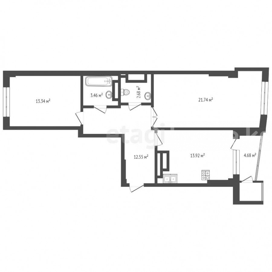 2-room apartment, 72.26 sq. m