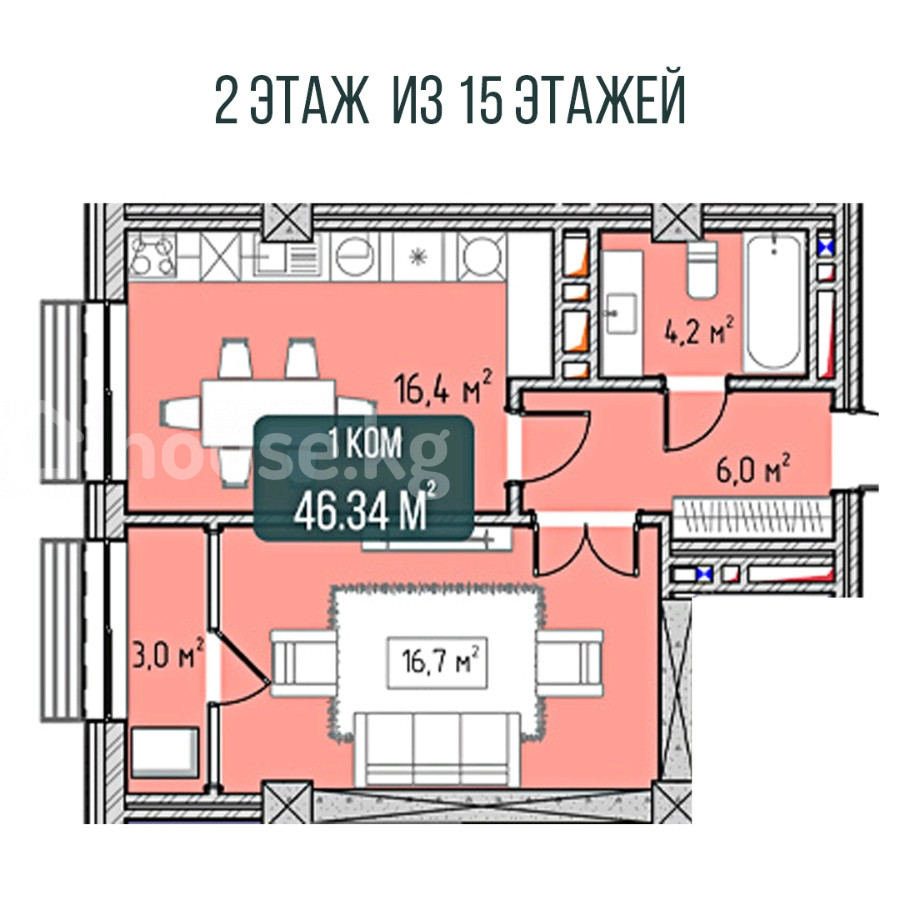 46 м2, жилая: 46 м2, кухня: 16 м2