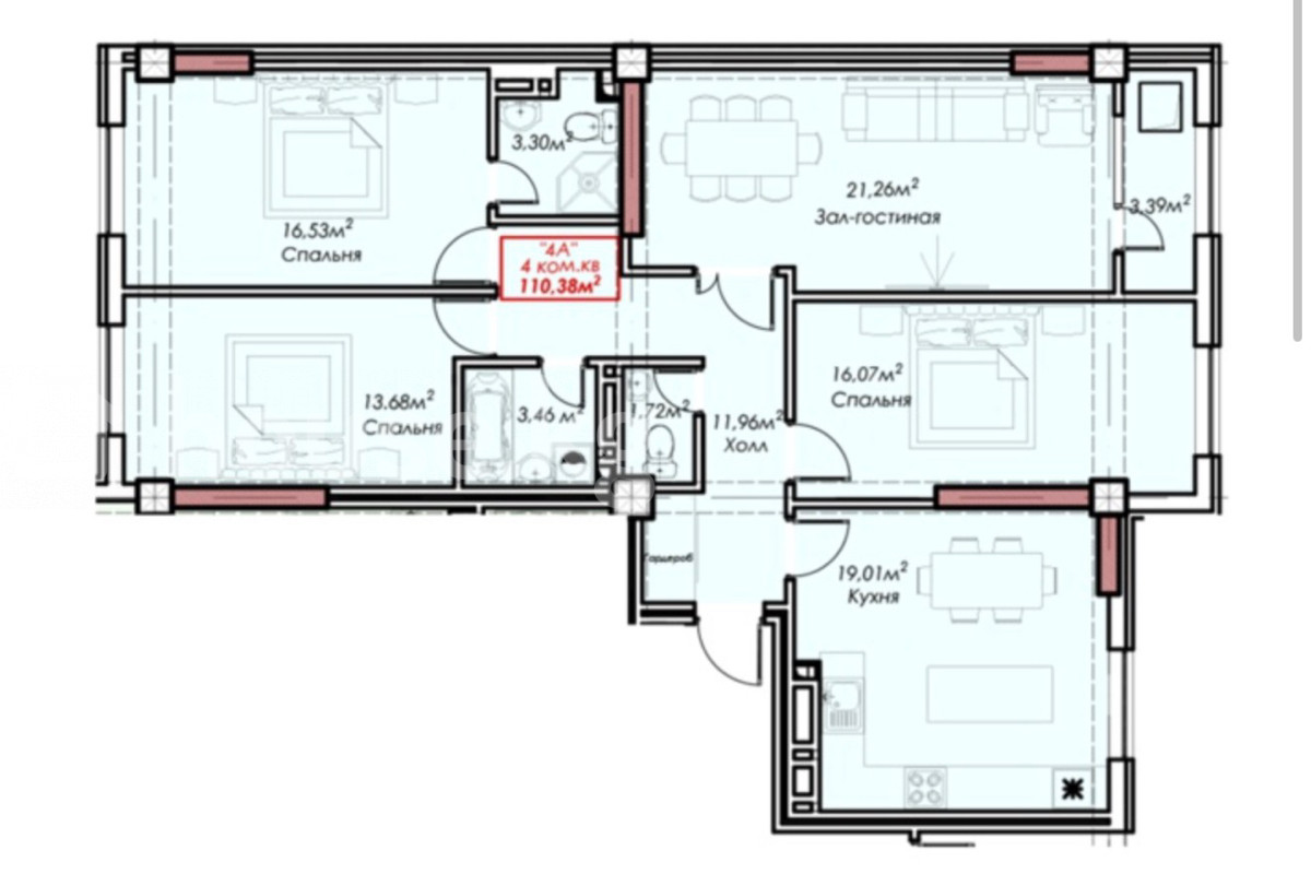 4-комн. кв., 111 м2