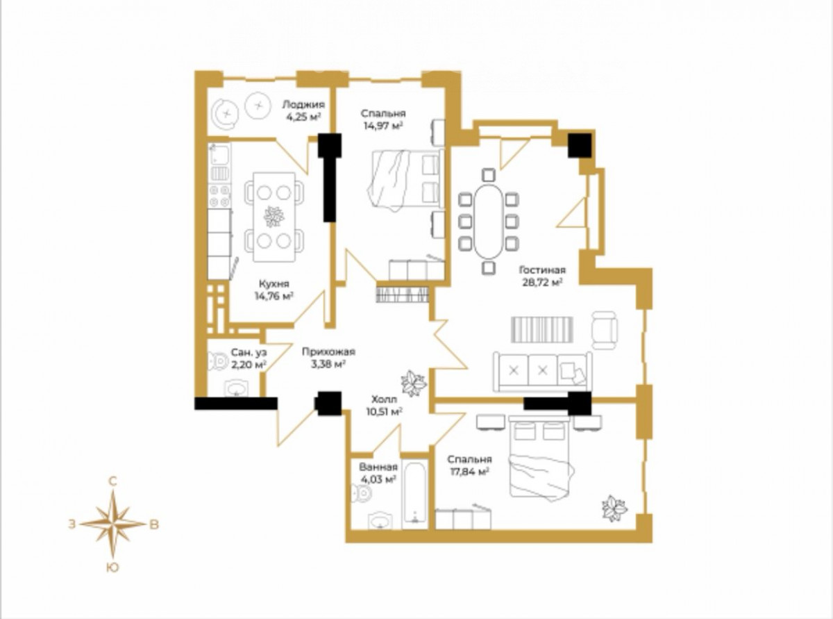 3-room apartment, 103 sq. m