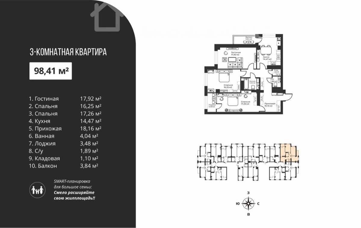 3-room apartment, 98.41 sq. m