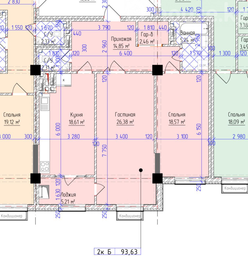 94 sq. m, kitchen: 19 sq. m