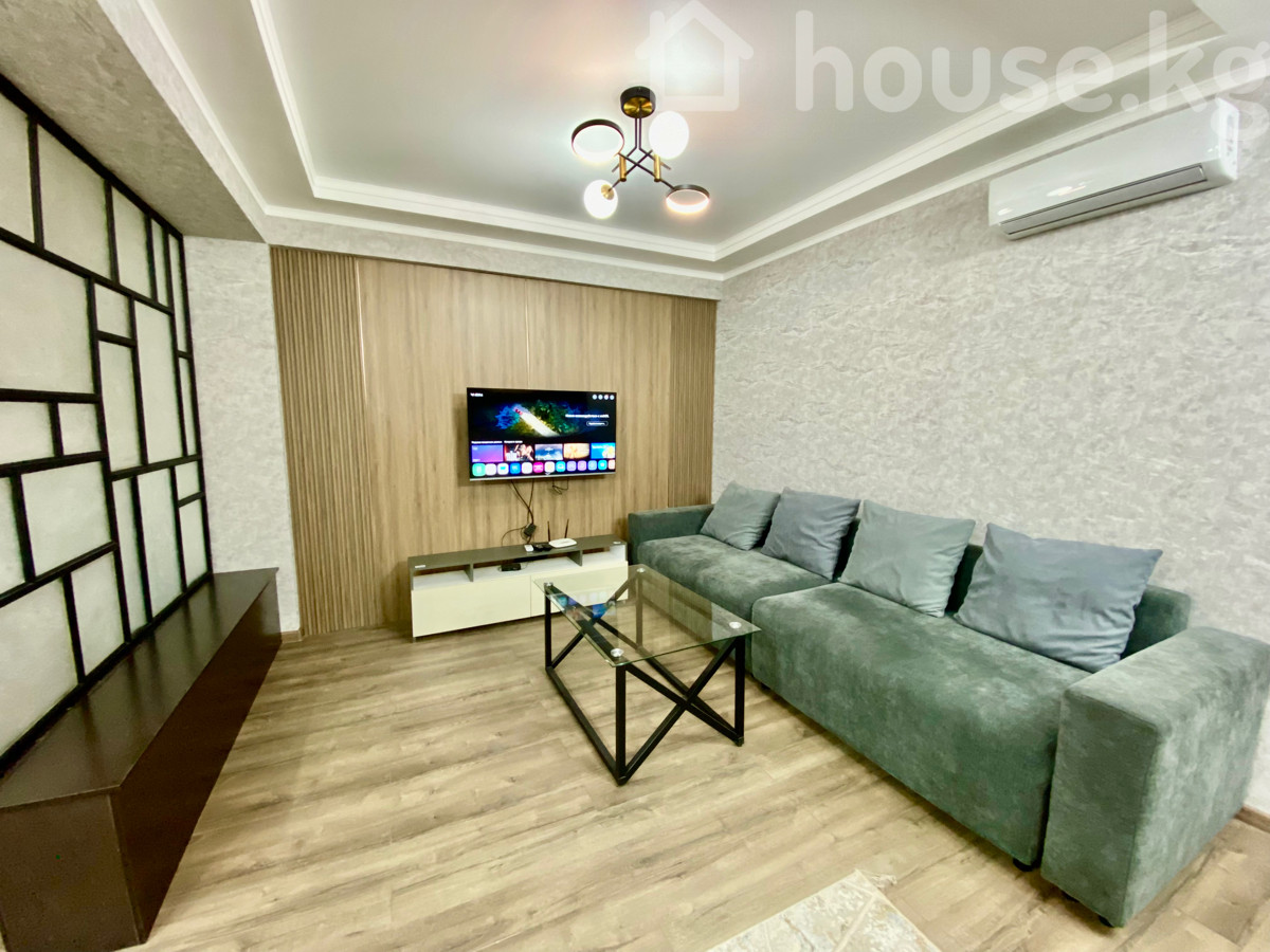 Стильная 1-комнатная квартира с продуманной планировкой и современным интерьером. Район «Дворец-Спорта». - Просторная гостиная с большим угловым диваном, стеклянным журнальным столиком, настенным Smart‑TV, декоративными панелями и кондиционером. - Кухня открытого типа: гарнитур с фасадами под дерево, варочная поверхность, духовой шкаф, вытяжка, холодильник, микроволновая печь, мойка с высоким изливом, обеденный стол и стулья. Панорамное остекление с легкими шторами. - Уютная спальня: двуспальная кровать с мягким изголовьем-капитоне, прикроватные тумбы, точечные и настенные светильники, шкаф‑купе с зеркальными дверями, туалетный/рабочий столик! - Оснащение: кондиционер, телевизор, комплект кухонной техники и посуды первой необходимости, плотные и прозрачные шторы.