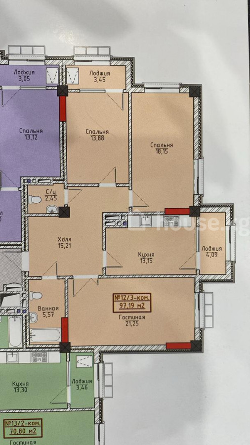 3-room apartment, 97 sq. m