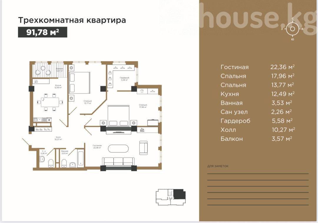 ЖК Атмос 3х ком квартира 91кв В доме бизнес класса от N Group Сдача ПСО конец 2026 года Центральное отопление в самом центре города ЦЕНА; 91780$ Тел. 0701-77 23 77 Нураида ID: 82542