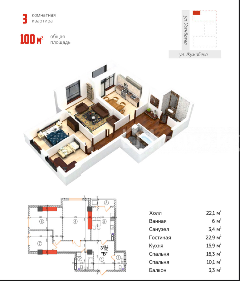 🔥 Выгодное предложение от подрядчика! Продаётся 3-комнатная квартира в ЖК Burana Palace от Burana Grand (Emark Group) 📍 Пересечение ул. Жумабека / Шопокова 🏢 Блок B 🏙 Этаж 10 из 18 📐 Площадь: 100 м² 🛠 Состояние: ПСО 📅 Срок сдачи: конец 2026 года 💰 Цена: 1200 $ за м² ❗️Цена ниже, чем у застройщика 🏢 Преимущества жилого комплекса: • надёжный застройщик Emark Group • современная архитектура • закрытая благоустроенная территория • видеонаблюдение и охрана 24/7 • детские и спортивные площадки • подземный и гостевой паркинг • собственный кинотеатр в ЖК 🎬 • летняя терраса с панорамным видом 🌇 • удобная транспортная развязка • развитая инфраструктура района 📍 Рядом: • Центральный ЗАГС, ЦИРК • школы и детские сады • торговые центры и магазины • кафе и рестораны