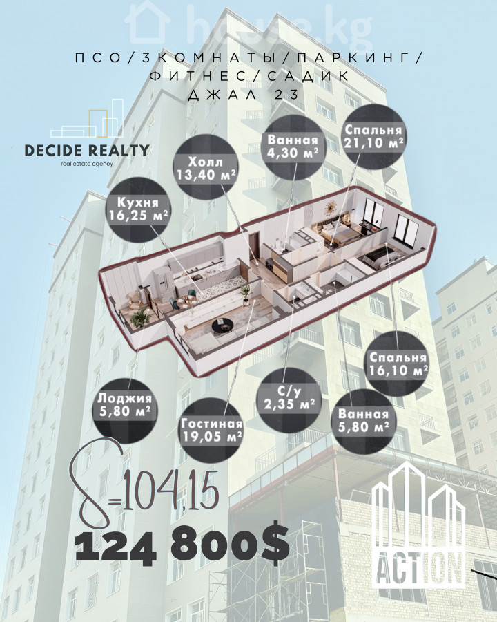 📲 0(550)25-12-98 ✨ 3-комнатная квартира в новом ЖК “Action”, Джал-23! 📍 Ленинский район, рядом школа №72, гос. садик, Манас университет. 🏢 6 этаж, площадь — 104 м². ✅ Уникально для Кыргызстана: садик, паркинг и спортзал — всё в одном комплексе! ✅ Современный 14-этажный дом, надёжный кирпичный фундамент ✅ Срок сдачи — зима 2025 года ✅ В шаговой доступности магазины, школы, детсады Просторная планировка, отличная инвестиция и комфорт для семьи. 📲 Звоните прямо сейчас, пока цена выгодная! 0(550)25-12-98 ---------------------------------------------------------------------------------------- Жаңы “Action” ТКда 3 бөлмөлүү батир, Жал-23! 📍 Ленин району, жанында №72 мектеп, мамлекеттик бала бакча, Манас университети. 🏢 6-кабат, аянты — 104 м². ✅ Кыргызстанда биринчи жолу: бала бакча, паркинг жана спортзал — бир комплексте! ✅ 14 кабаттуу заманбап үй, бекем курулуш ✅ Колдонууга берүү — 2025-жылдын кышында ✅ Жөө жеткидей аралыкта дүкөндөр, мектеп, бала бакча Кеңири пландоо, үй-бүлө үчүн ыңгайлуу жана инвестиция үчүн пайдалуу. 📲 Баасын билүү жана толук маалымат алуу үчүн азыр чалыңыз! 0(550)25-12-98