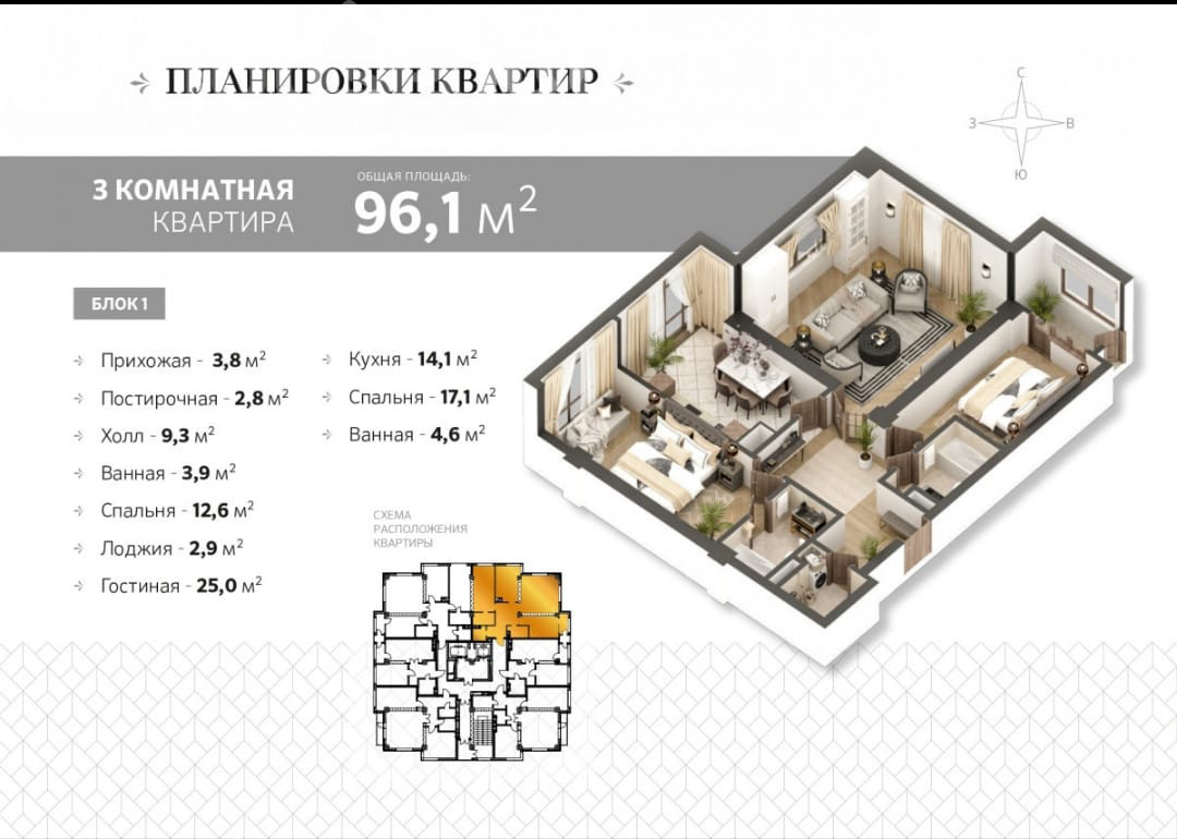 Продается 3 комнатная квартира ПСО в Премиум Комплексе Район филармонии СК Gala Group ЖК Дуэт Этаж 5 из 14 Площадь 96.1м2 Коммуникации центральные Все! Дом на красной книге Техпаспорт, ДКП. Цена 165 000$