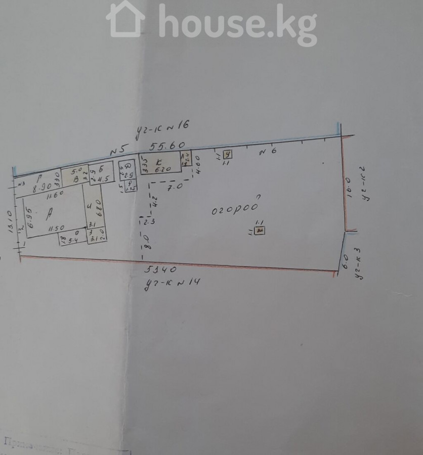 Продается!!! Дом, в районе Аламединского рынка S -64,52м2. В доме зал - 15,20м2, три спальные комнаты, кухня- 6,2 м2, прихожая. Коммммуникации : электричество ( зфазка, 3КВТ), природный газ, вода. Отопление водяное т/т, газом. Стены обои. Окна, полы, дверидеревянные. Потолки 2,85м. Фундамент выше 60см. Крыша шифер. Дом плановый, крепкий. На участке выстроена баня, хозпостройки, гараж. Участок по юр документу - 6,0соток, по факту - 9,74соток. Ширина участка - 13,10 метров. В глубине участка - 22,0 метров. Длина участка -53,40 метров. Цена - 150000$.США (13125000 сом) ТЕЛЕФОН 0707036398 0555600551