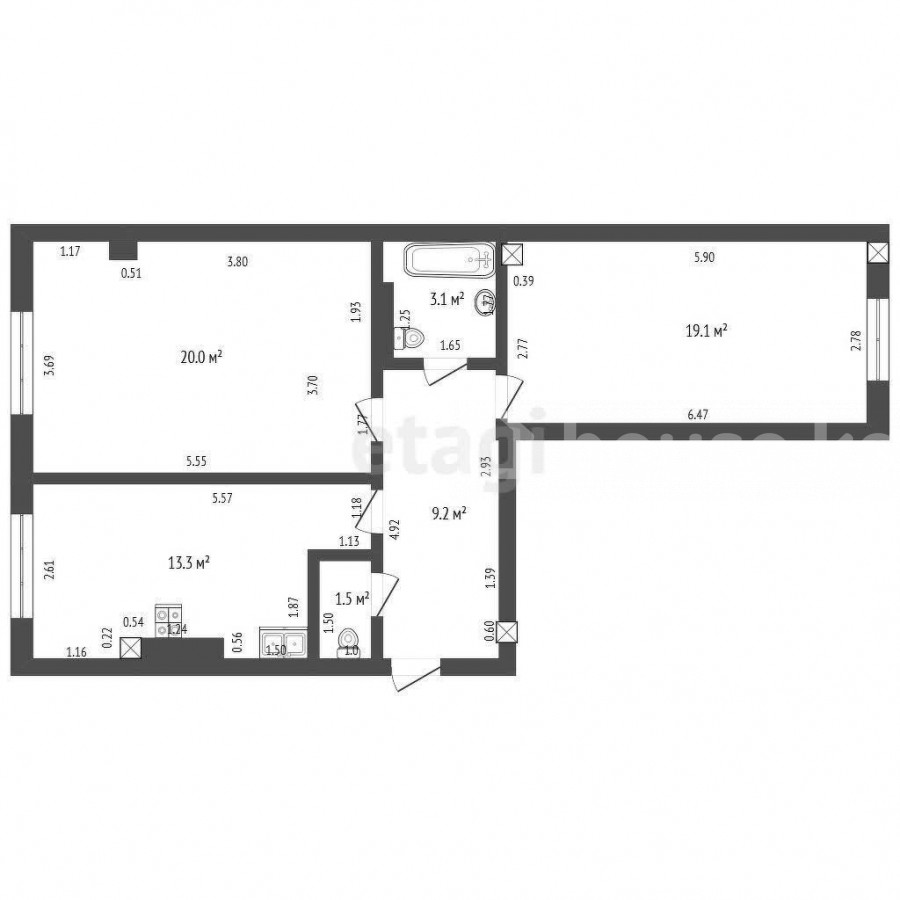 2-room apartment, 66.2 sq. m