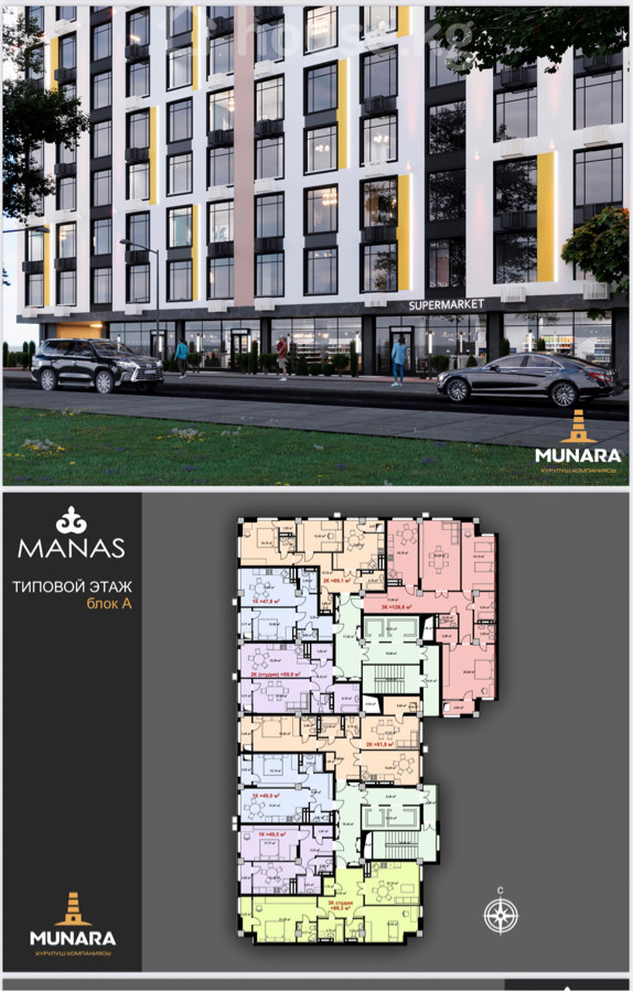 Продается 2х ком квартира с отличной планировкой!!!! ЖК «Манас» От Мунара строй Этаж: 8 из 12! Площадь: 82,9м2 Монолитно-кирпичный дом! Земля на красной книге!!! Отопление автономное-газовое! Все разрешительный документы есть! Адрес: Алматинка/ Магистраль СДАЧА ПСО 4 квартал 25 года.