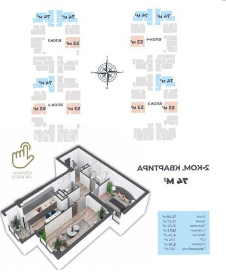 2-room apartment, 73 sq. m