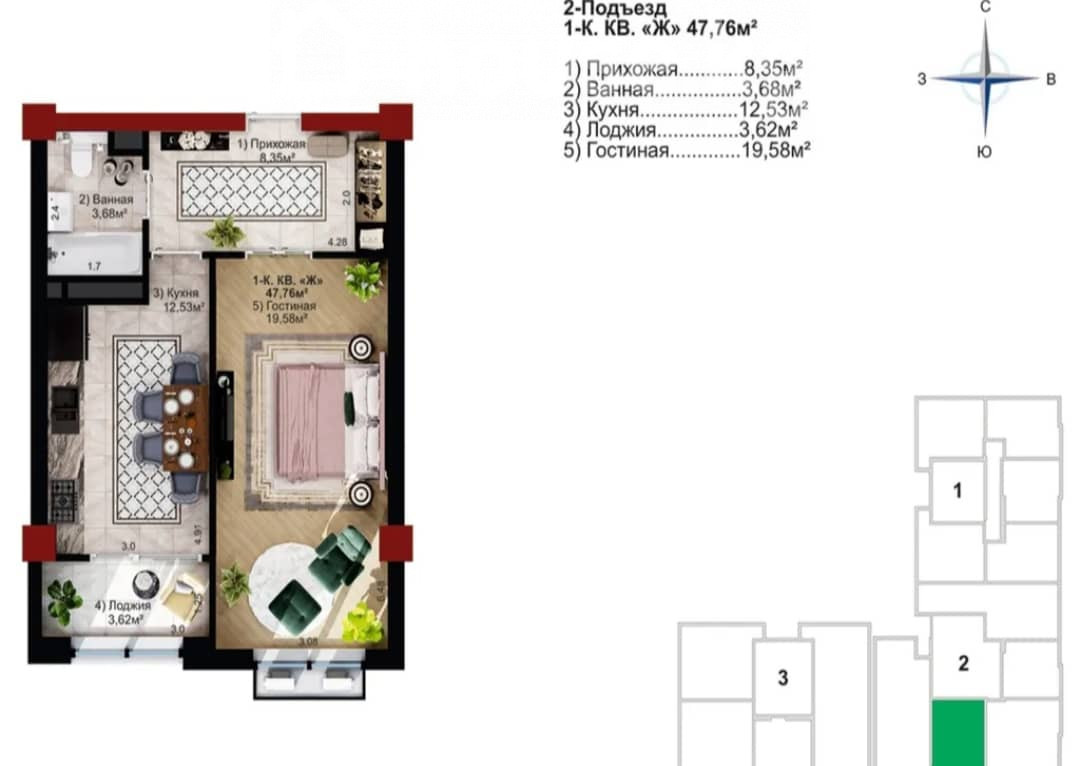 Продается 1- комнатная квартира 📍Адрес:Дворец спорта 🏗Застройщик: Royal Construction 🏢 Жилой Комплекс: Millennium 🏛Серия: Элитка 🏬Этаж/Этажность: 12/15 📐Площадь: 48м2 💧Коммуникации: центральные ♨Отопление: Центральное 🚪Состояние квартиры: ПСО 🚽Сан узел: Совмещённый 📃Документы: ДДУ, Красная книга 💵 Цена: 77,500$ ID0020 Адилет