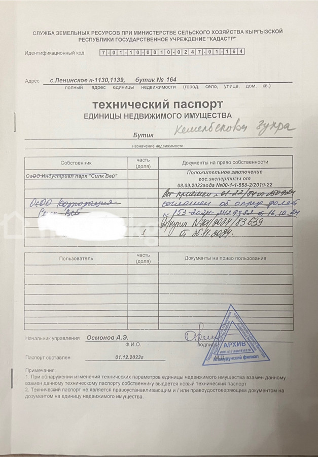 📌Продаётся в очень перспективном районе коммерческое помещение! 📍Расположен в первом индустриальном парке в Центральной Азии "SILK WAY" 🛑Первый в центральной Азии ТЦ с правом собственности торгового бутика! ▶️Бутик расположен на 1️⃣-первом этаже ▶️ Идеально подходит для развития бизнеса. Можно под обменку или офич. ▶️ Все правоустанавливающие документы на руках ▶️ Рядом распологается новый «Бишкекский автовокзал» ▶️ ТЦ отопляемый и кондиционированный, а так же имеются системы вентиляции 🔴Площадь: 34 м2
