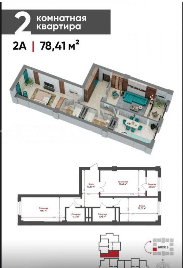 2-room apartment, 79 sq. m