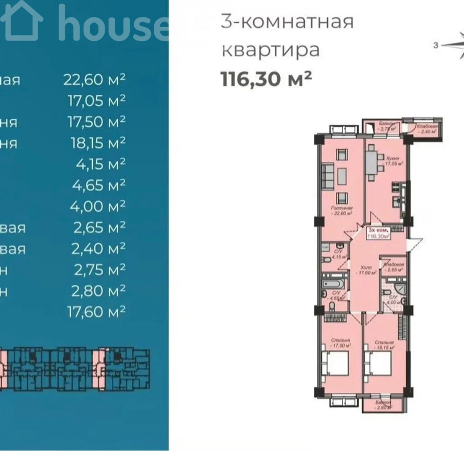 3-room apartment, 116 sq. m