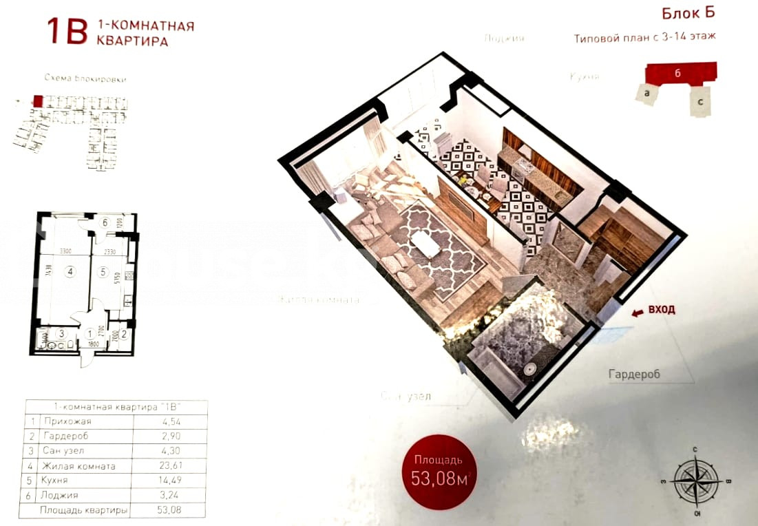 1-room apartment, 53 sq. m