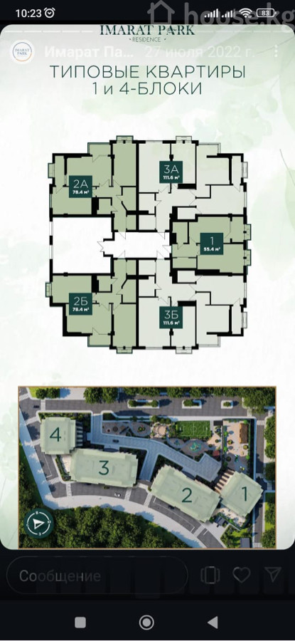 Жк Имарат Парк 2комнаная 80 кВ под Псо Квартира на 10 этаже Коммуникации все центральные, газовое отопление В квартире панорамные окна , два лифта , игровая площадка Сдача под псо дома апрель , май Рядом – резиденция президента и потрясающие парки – место притяжения для романтичных свиданий, прогулок с детьми и дружеских пикников. Чистейшая река Ала-Арча, которая протекает буквально через дорогу от комплекса придает уникальность объекта. 5 минут на машине – и вы возле ТРЦ «Ала-Арча», где расположен гипермаркет Globus и развлекательный парк Иллюзион. Неподалеку от жилого комплекса функционируют престижные и современные школы Oxford и Cambridge, где ваши дети получат европейское образование , рестораны Ала тоо , Нават Цена 116000$