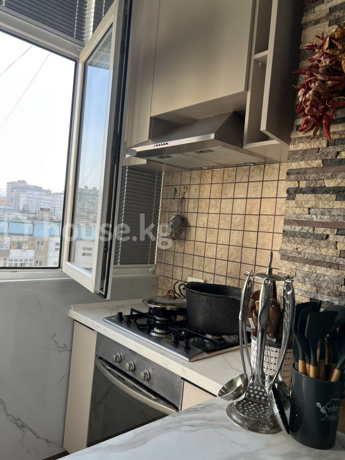 Просторная 4-комнатная квартира с продуманной планировкой и отдельной кухней. Если учесть сушилку, получается 5 комнат. Частично с мебелью этаж 7 из 9 адрес район Джал мкр площадь 80м2 Евроремонт Центральное отоплдение Гостиная: - Большой угловой диван с множеством подушек - Настенный телевизор - Выход на застеклённый балкон/лоджию через широкие двери - Двуслойные шторы (плотные и тюль) - Ковёр с классическим орнаментом - Потолочный светильник Кухня: - Современный гарнитур с встроенными секциями хранения - Столешницы под мрамор - Варочная панель и вытяжка - СВЧ-печь - Холодильник двухкамерный - Обеденная зона: круглый стол и комплект стульев - Окна с жалюзи, много естественного света - Декоративная отделка проёма под камень Дополнительно: - Пластиковые окна - Радиаторы отопления - Просматривается вид на город из окон кухни и лоджии Квартира готова к проживанию: меблирована и оснащена техникой, продуманное зонирование и уютный интерьер. цена 133000$ Кыргыз недвижимость Айгерим ID: 67417