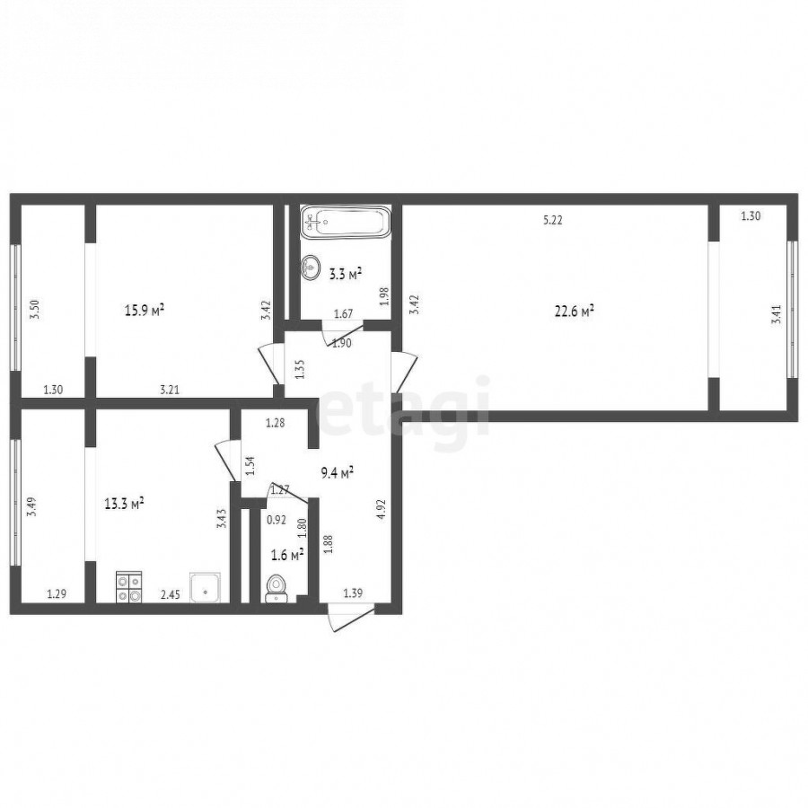 2-room apartment, 66 sq. m