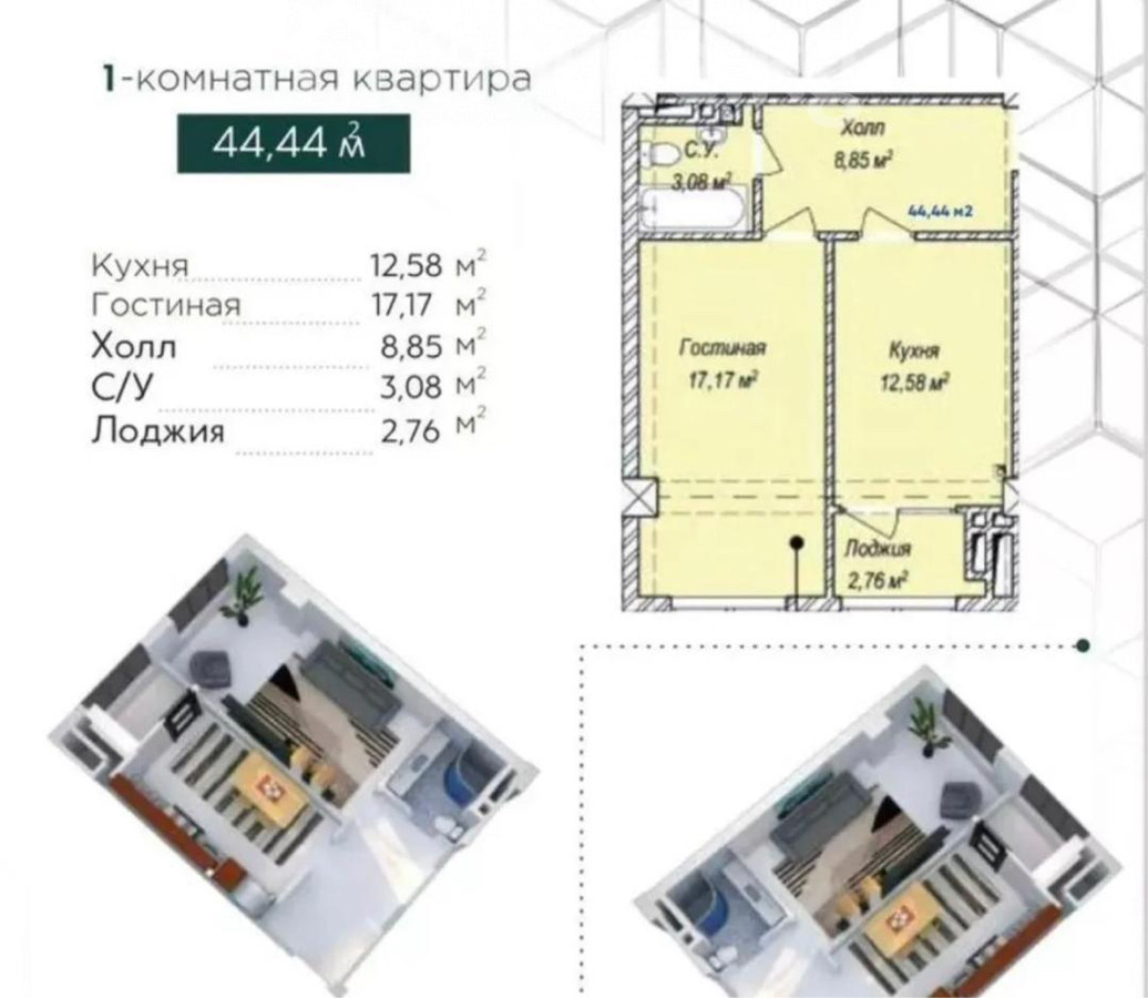 1-room apartment, 44 sq. m