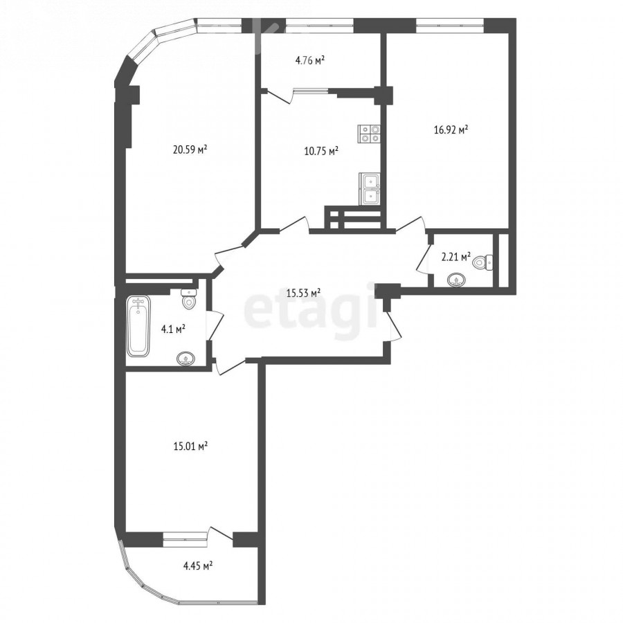 3-room apartment, 94.32 sq. m