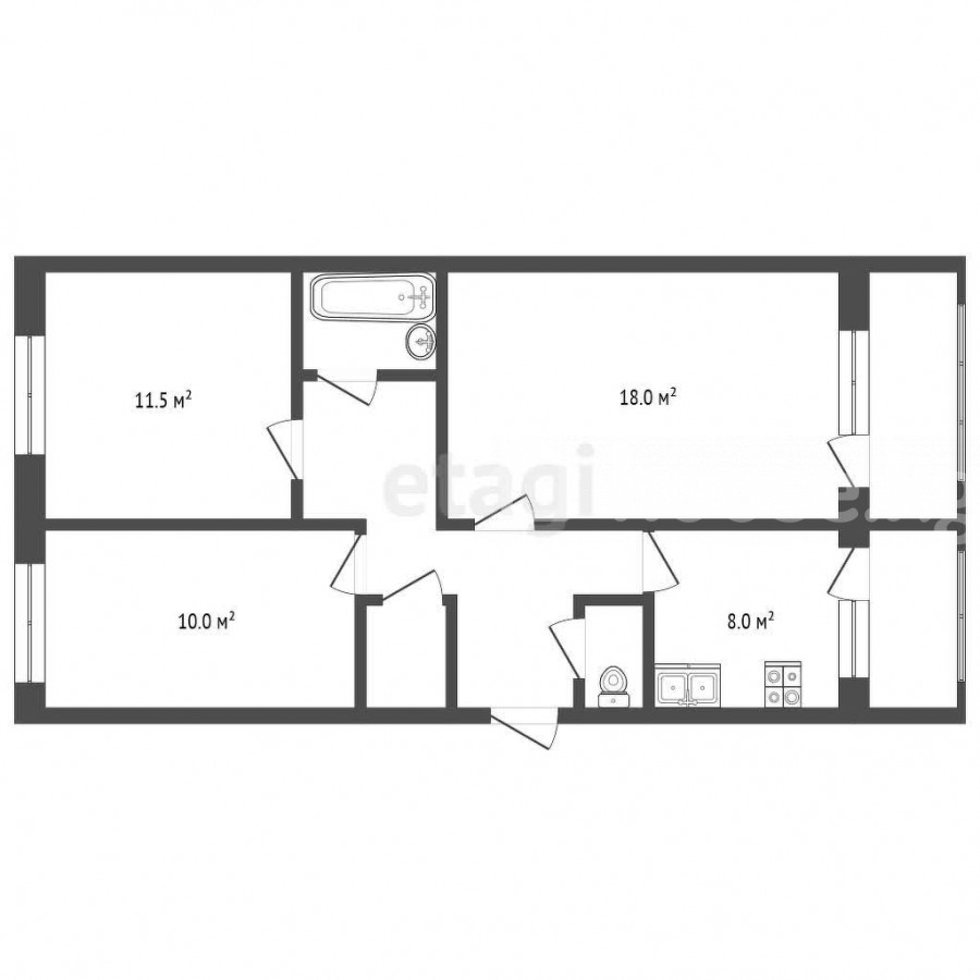 3-room apartment, 62 sq. m