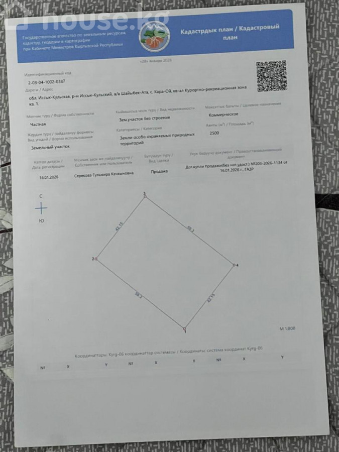 Продается участок 25 соток — Иссык-Куль, с. Кара-Ой (Тельтору) Основные характеристики: Локация: с. Кара-Ой (Долинка), район Тельтору. Престижный курортный сектор рядом с пансионатами «Ак-Бермет» и «Рохат». Площадь: 25 соток. Документы: Полный пакет (Красная книга, кадастровый план). Юридически чист, готов к оформлению. Преимущества: Назначение: Оптимально подходит под строительство коттеджного городка, гостевого комплекса или загородной резиденции. Расположение: Район с развитой инфраструктурой и близостью к круглогодичным горячим источникам. Территория: Правильная форма участка, удобные подъездные пути. Цена: 190 000$ «Кыргыз Недвижимость» ID: 83485
