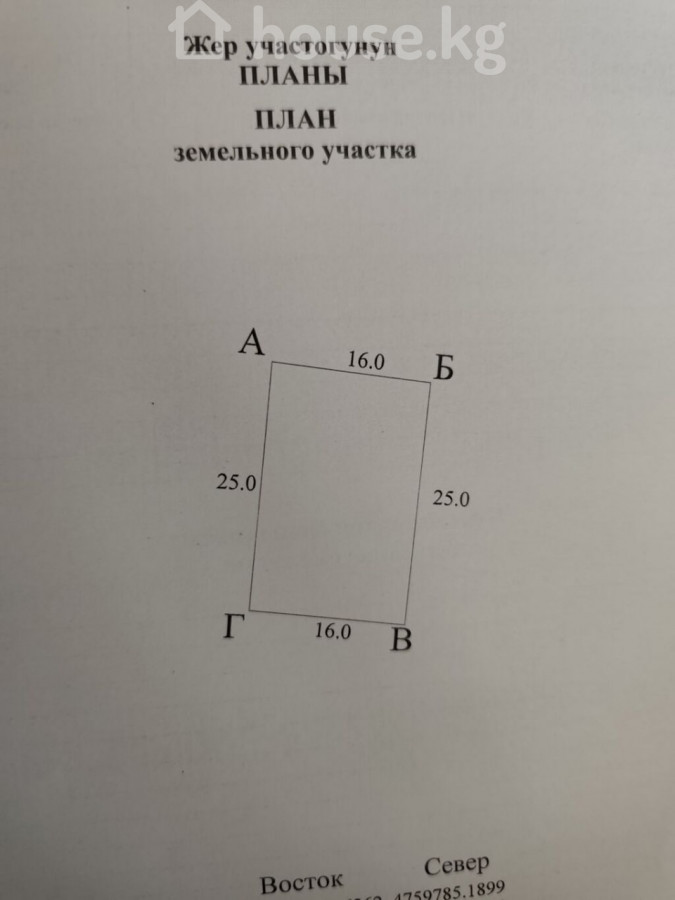 Продается земельный участок правильной формы 📍 Жилмассив Оскон-Ордо Площадь: 4 соток Размеры: 25 х 16 Есть электричество, все коммуникации проведены, Канализация своя септик Документы: Тех паспорт, Красная книга Участок с готовым фундаментом проект дома в подарок Цена: 88. 000 $ id: 0508 0500\\777\\551 (Нурсултан) звоните объект актуален!