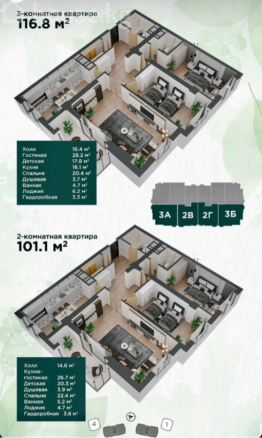 3-комн в ЖК Имарат Парк Резиденц ( Imarat Park Residenсе ) от строй. компании Имарат Строй ( Imarat Stroy ) 📍Малдыбаева / Масалиева ( Юж. Магистраль ), возле ресторана Ала Тоо, напротив парка Южные ворота 🔸площадь: 101.1 кв.м. 🔸6 этаж из 20-ти 🔸коммуникации центральные (отопление газовое) 🔸территория 1.2 га (60% площадь двора и озеленения) 🔸Сдача ПСО - 2026 год 4 квартал 🔸Витражные алюминиевые окна ✅Инфраструктура: Собственная управляющая компания, Детская площадка, Фитнес клуб, Дошкольный образовательный центр, Зарядные станции для автомобилей, Охраняемый двор без машин, Консьерж служба 🏠Комплекс находится в экологически чистом районе города в окружении парков Ынтымак, Южные ворота. Школы: Oxford, Cambridge, Газпром. ТРЦ Ала-Арча, ГМ Глобус, ресторан Ала-Тоо