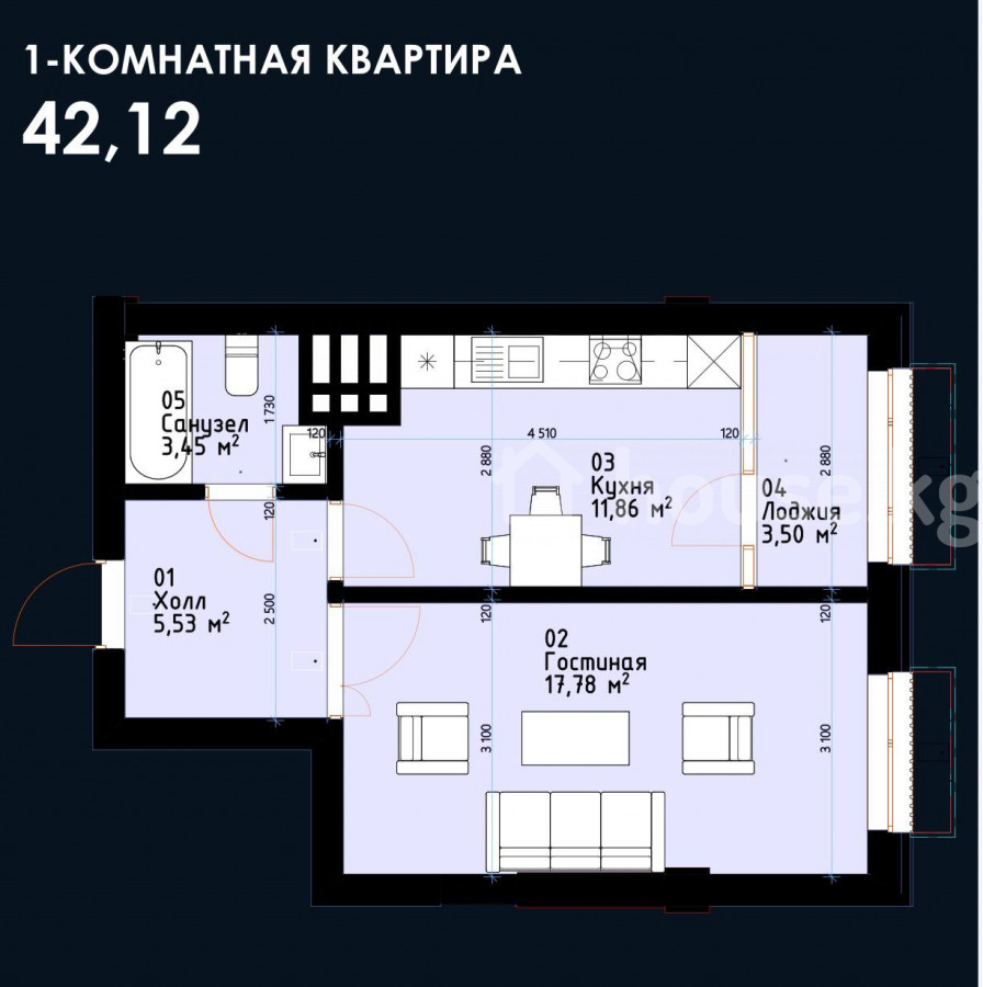 1-комн. кв., 42 м2