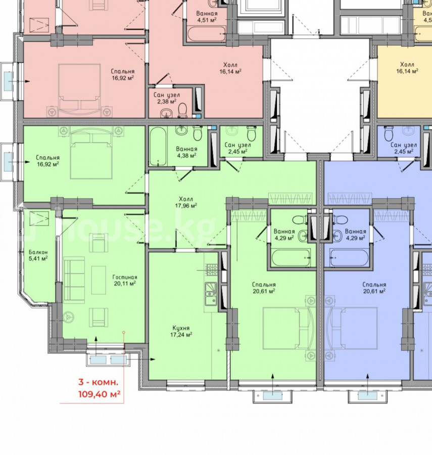 3-комн. кв., 109 м2