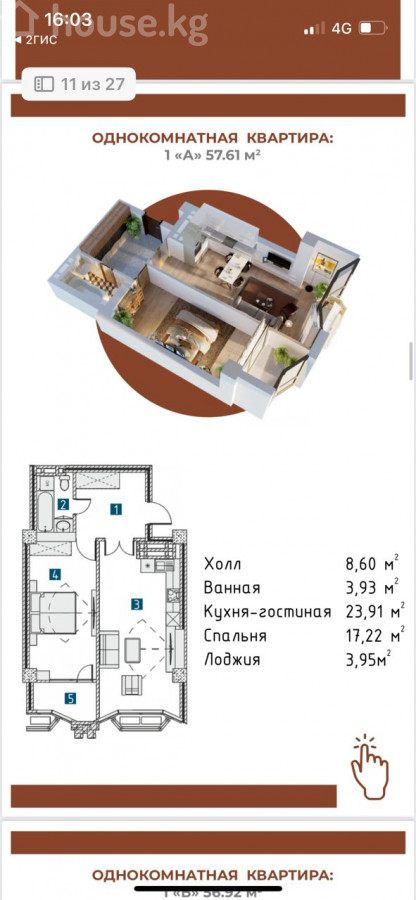 1-комн. кв., 57.61 м2