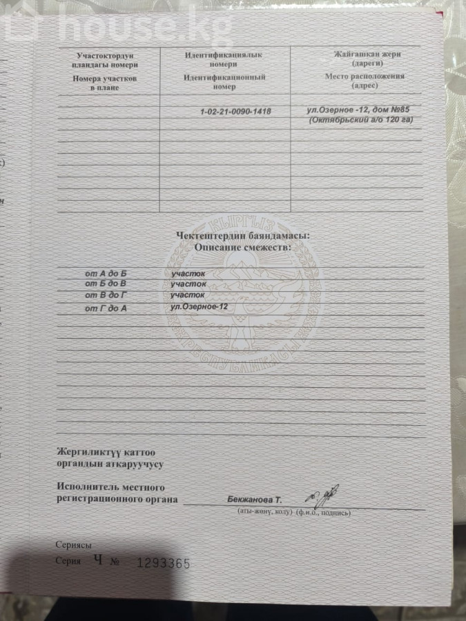 Бишкек, с. Озёрное, Бугу Эне 85/Озерное