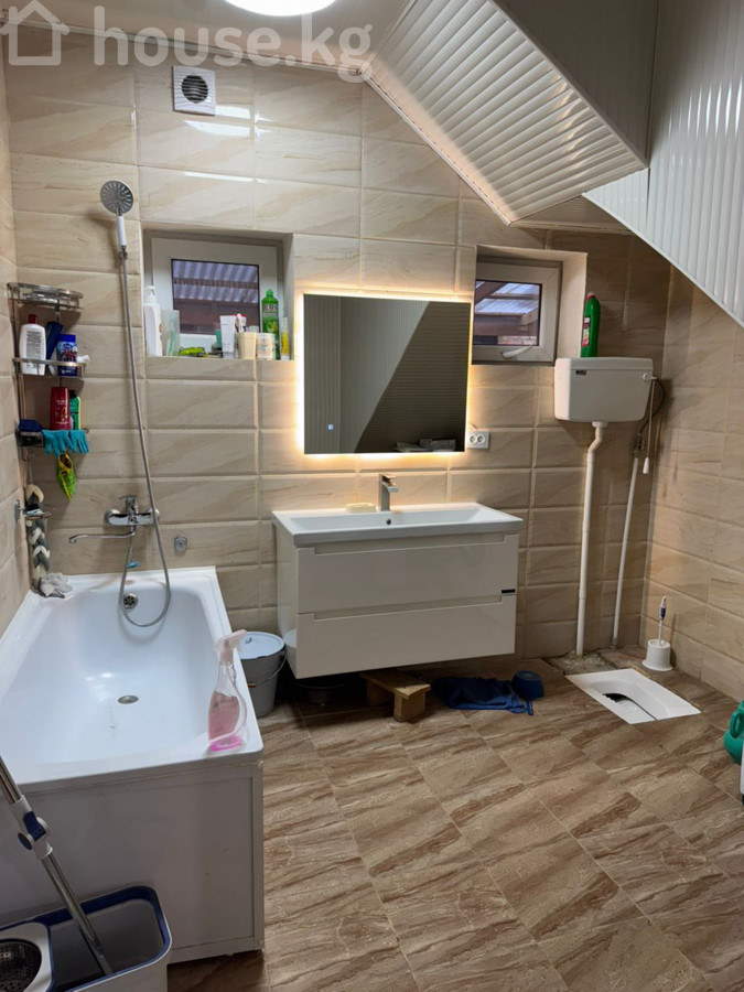 Срочно продается 2-этажный дом. Со свежим ремонтом. Район: ж/м Ак-Ордо. Площадь участка 4 соток. Площадь дома: 156,1 м2 Материал стен: жжёный кирпич. Количество комнат: 4 По документам: юридически чистый, на красной книге, тех.паспорт есть. Коммуникации: автономное отопление, местные септики. Дополнительно: базальтовое утепление дома, покрытие фундамента Сары Таш, теплый пол, водонагреватель, имеется погреб, подвал. Забор огорожен, имеется место для очокканы с вытяжкой под навесом. Локация: в 5мин от ЖК Олокон, рядом есть мечеть. Цена: 150000$ торг при осмотре Для подробной информации звоните! 0707-47-73-83