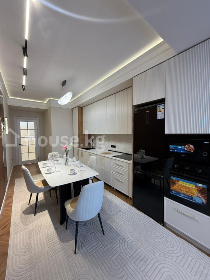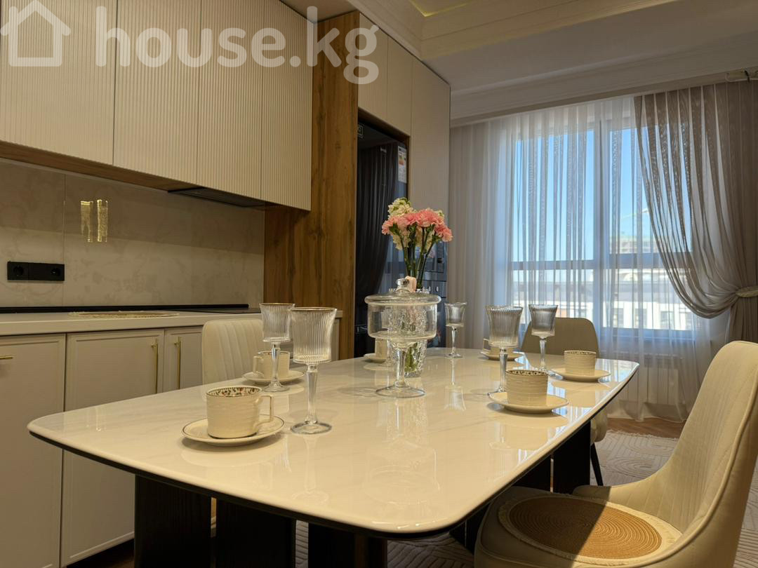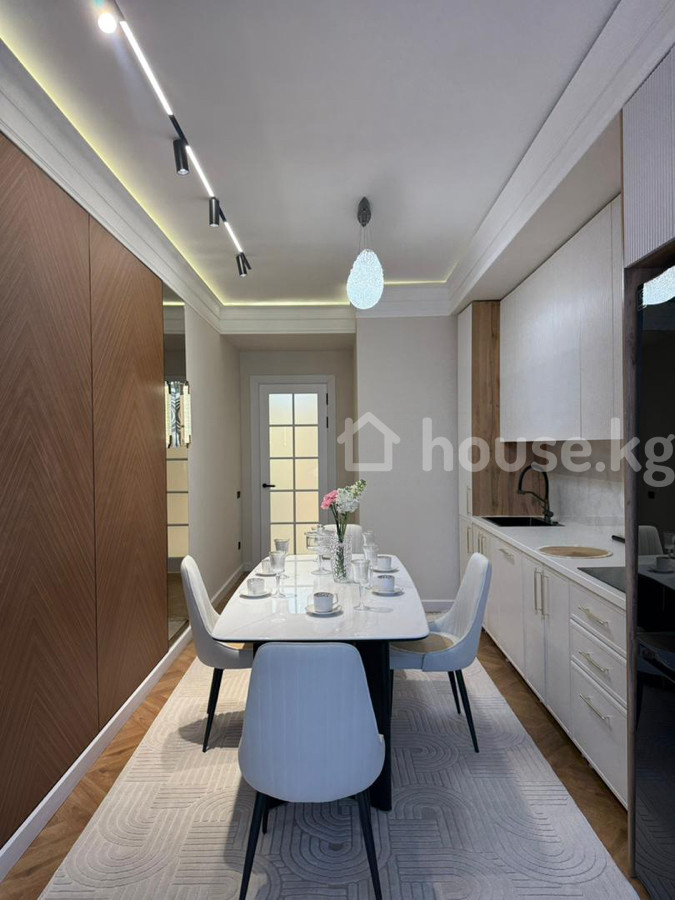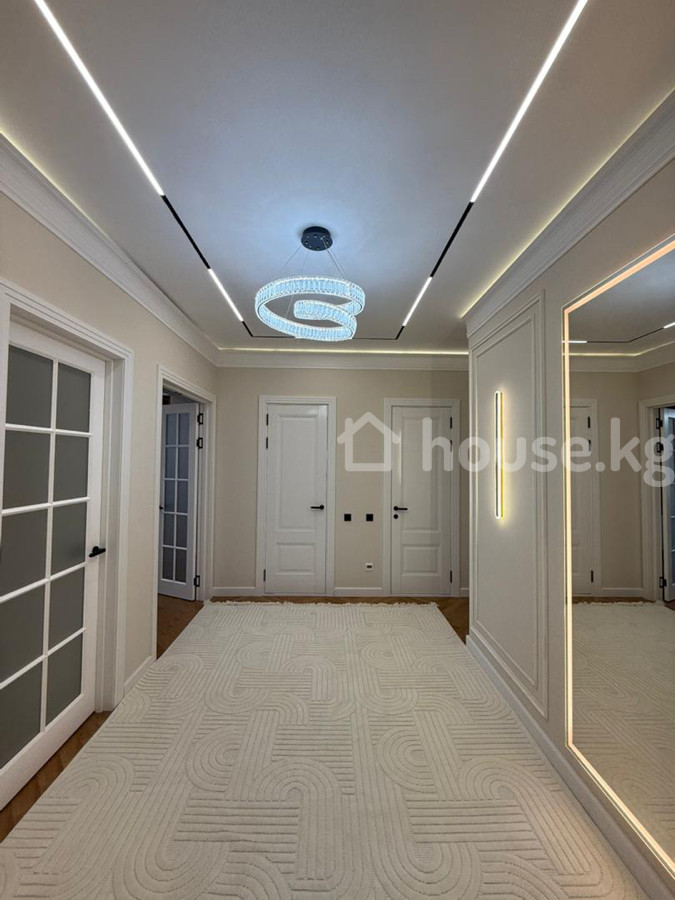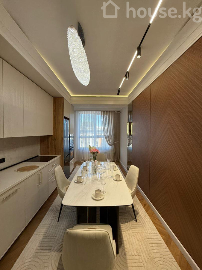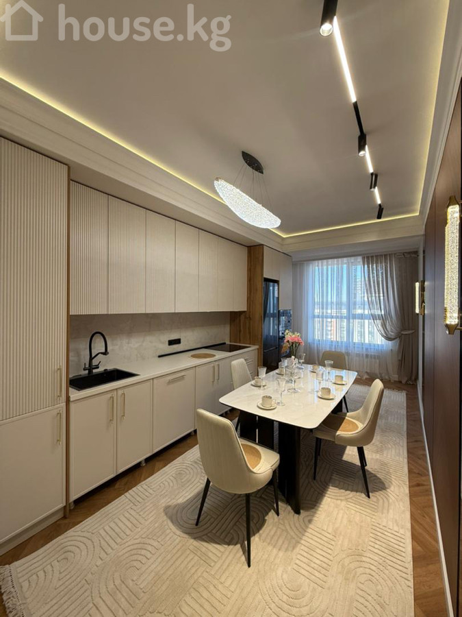 Продается 2‑комнатная квартира в ЖК «Нурзаман Сити» Адрес: Асанбай Серия: элитка Этаж/этажность: 14/15 Площадь: 83 м² Коммуникации: свет, газ, вода Отопление: газовое Планировка: сквозная Санузел: совмещенный Документы: ДДУ Цена: 170 000$ О квартире: - Дизайнерский ремонт в современном стиле - Просторная гостиная с большим модульным диваном, встроенной стенкой/библиотекой с подсветкой - Потолочное зонирование с контурной и линейной LED‑подсветкой, центральные хрустальные люстры - Панорамные окна с двойными шторами (блэкаут и тюль) - Напольное покрытие — паркетная елочка; в зоне гостиной — фактурный ковёр - Встроенные системы хранения, закрытые и открытые стеллажи - Качественные межкомнатные двери с остеклением Квартира светлая, продуманная по эргономике и готовая к проживанию.