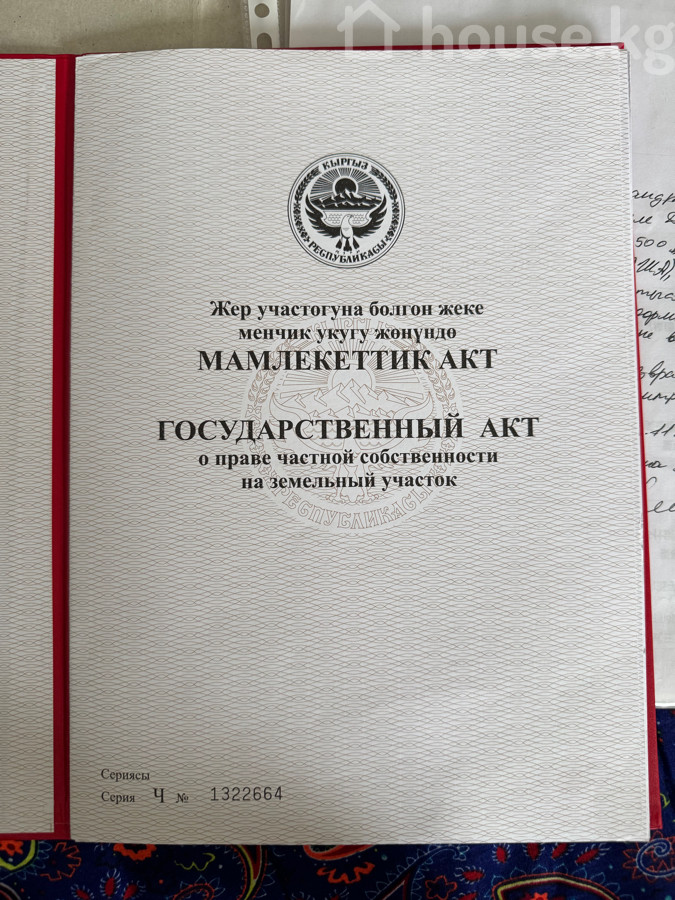 Продается участок 6.57 соток, в селе Достук. •хорошая локация •напротив нового Ошского рынка •от участка 200м. строится новая школа •рядом строится городок Алтай Ранее дачный участок, сейчас документы переоформлены на городские. Имеются все необходимые документы:красная книга, техпаспорт;