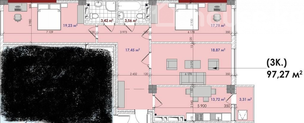 3-комн. кв., 97 м2