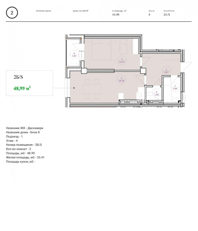Продается 1 комнатная квартира в ЖК Discovery 8 блок , 4 этаж Площадь 48.99м2 ПСО сдача конец 2026 Окна на запад на Нью Сити ID: 73866