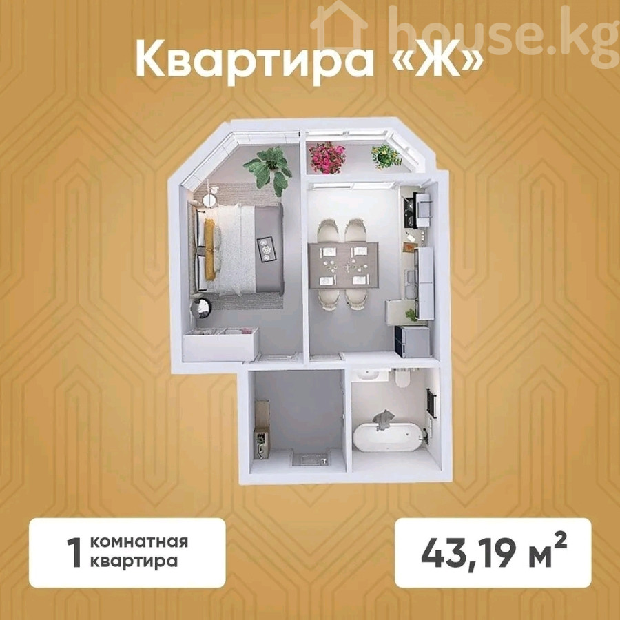 Продажа, 1-комн. кв., элитка, Бишкек, с. Кок-Джар