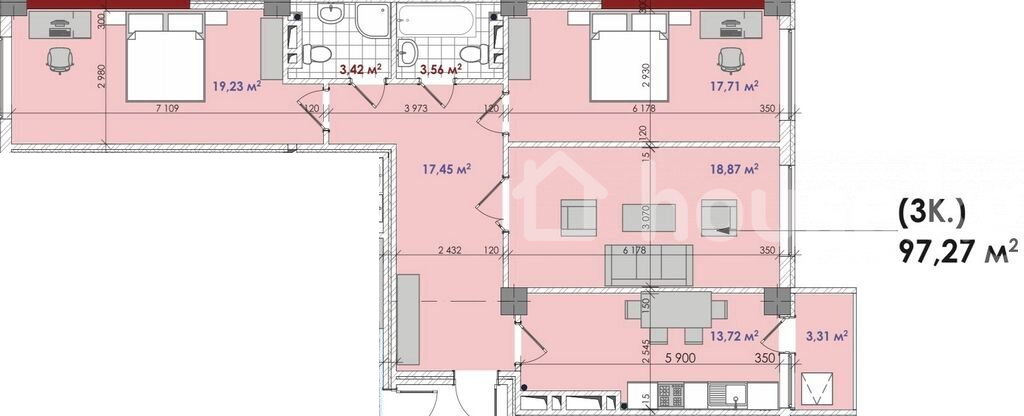 3-комн. кв., 97 м2