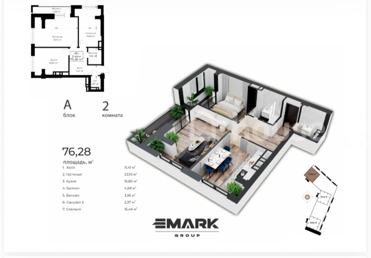 Выгодное предложение от подрядчика Продаётся 2-комнатная квартира в ЖК Emark Residence от Emark Group Площадь: 77 м² Этаж: 7–8 из 18 Локация: Рядом Парк Победы, Sky Park, Азербайджанский парк Кафе, рестораны, прогулочные зоны — всё в шаговой доступности Сдача: 2027 год
