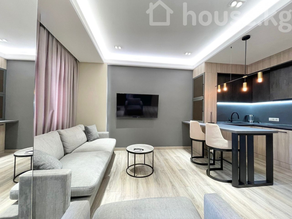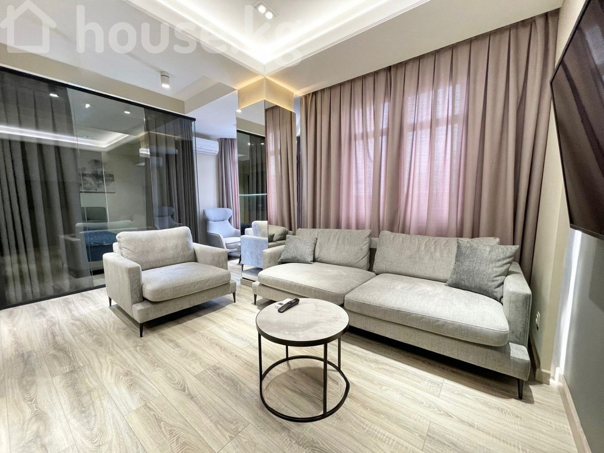 Сдается дизайнерская студийная 2 комнатная квартира в золотом квадрате. Улица Боконбаева 101. На 2 этаже, с площадью 60 кв.м. Полностью меблирована, имеется вся бытовая техника. Рядом Эркиндик Бульвар, кофейни, поликлиники, школы. Цена: $ 1300 и депозит