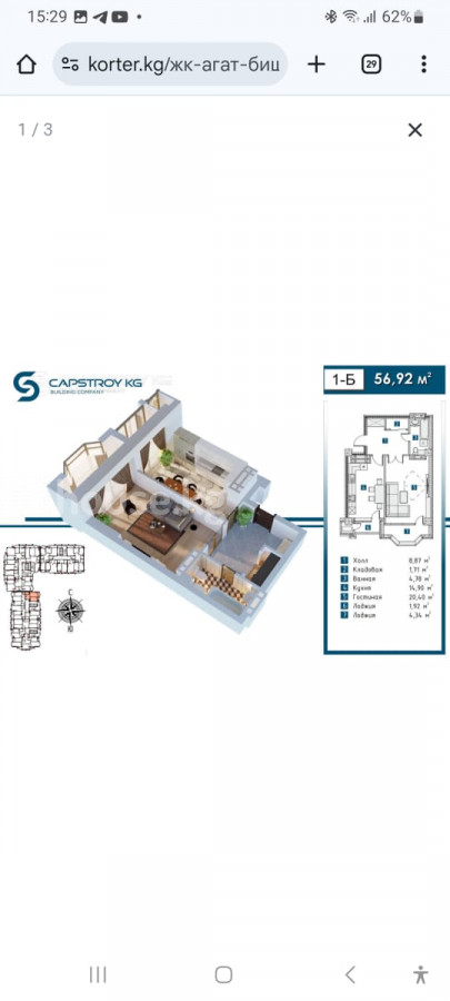 Срочно продаётся 1-комнатная квартира под ПСО в ЖК «Агат»! 📍 Локация: район Ак-Кеме, Старый аэропорт — один из самых востребованных и активно развивающихся районов города. 📐 Площадь: 55 м² 🏢 Этаж: 10 из 16 🔥 Отопление: автономное 🔌 Коммуникации: центральные 🚪 Планировка: удобная, на этаже всего 4 квартиры — тишина и комфорт 🛗 Инфраструктура дома: два скоростных лифта ⭐ Преимущество: действительно шикарная локация — всё рядом! Цена :86500$ (7 568 750 сом) Отличный вариант как для проживания, так и под инвестицию. Дом современный, коммуникации подведены, удобный выезд в любую часть города. Жанарбек 0701774077 ID: 71718
