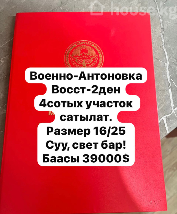 Срочно‼️ Кожомкул айыл окмотуно караштуу Восст-2 конушунан 4сот. участок сатылат. Биринчи 16лык мнн 26-кочонун кесилишинде. Главный жолдон 3чу участок! Бардык документ колдо!📕 Госрегистрдан откоруп беребиз. Ватсапп +996 (509) 05 38 56