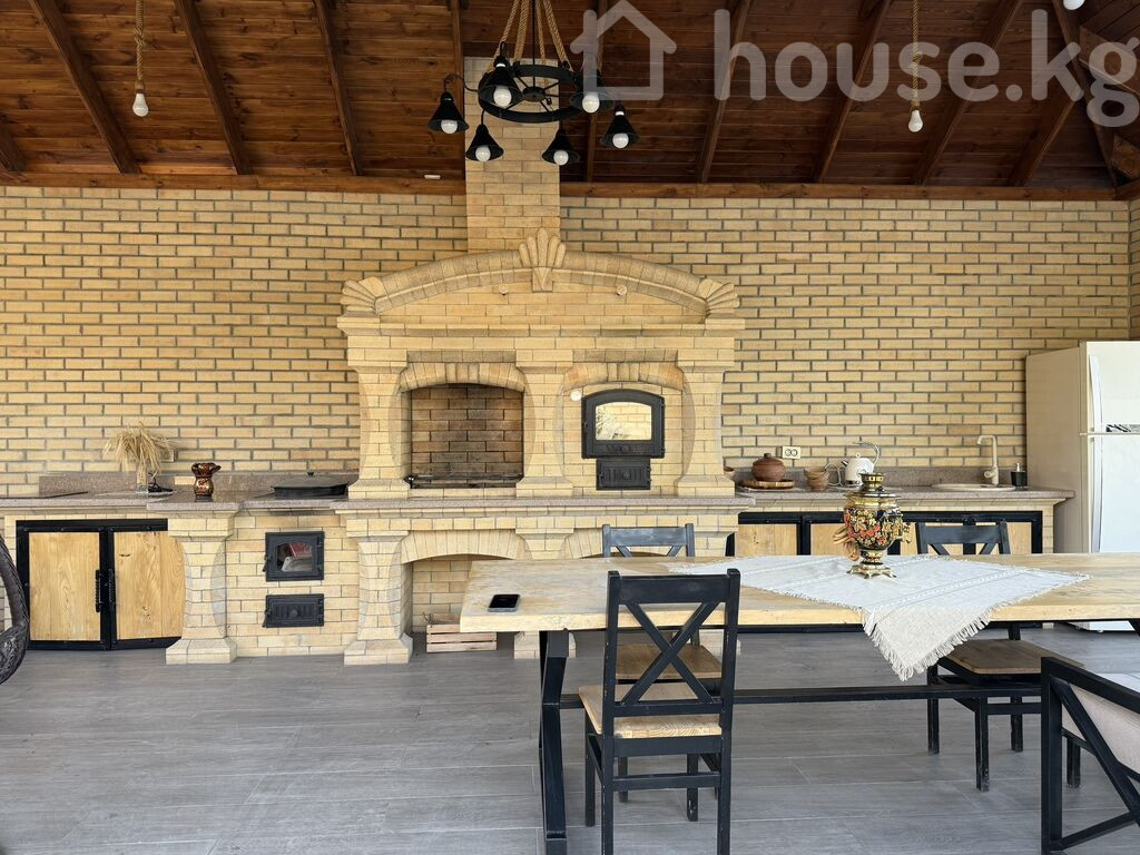 Продаётся гостевой дом — готовый бизнес 🏡 Новопокровка Вторая улица от центральной трассы Участок 22 сотки, правильной формы, с возможностью дополнительной застройки (ещё один гостевой дом или футбольное поле). Цена: 345 000 $ 30 200 000 сом Дом: • Монолитно-кирпичный Тёплые полы Отопление — электричество (тепловой насос) Кондиционеры Территория и благоустройство: Озеленение: голубые ели, розы на штамбе, молодой сад Автоматический полив газонов • Баня с соляной стеной • Бассейн с подогревом • Барбекю-зона (очок кана) полностью из шамотного кирпича • Комната с караоке Коммуникации и безопасность: • Автоматические ворота • Видеонаблюдение • По улице проходит газ • Участок внесён в «красную книгу» 💼 Отличное предложение для бизнеса: Можно использовать как банный комплекс (почасовая аренда) или сдавать посуточно. ID: 64841