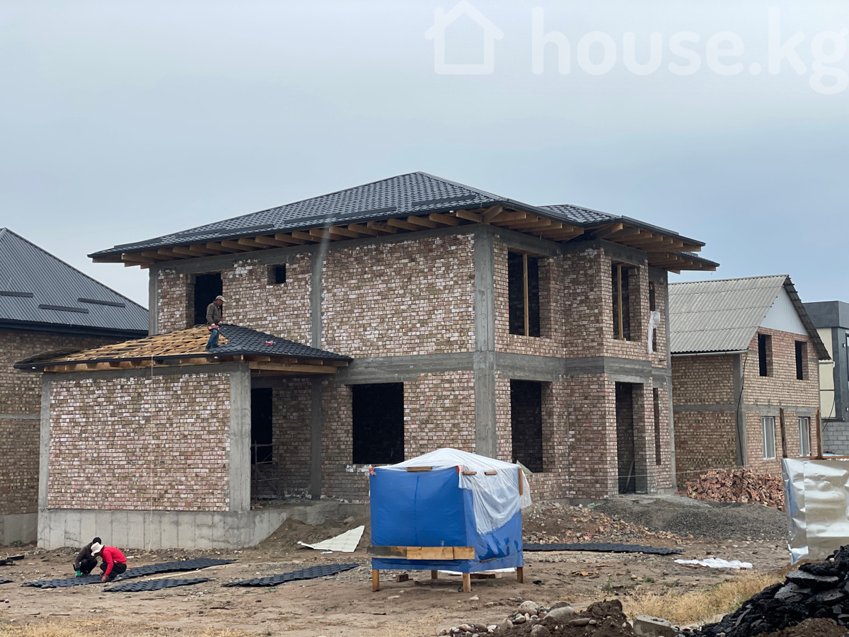 Продается 2 этажный дом с подвалом в Ак-Ордо 2. ПО ПЕРВОЙ ЛИНИИ АХУНБАЕВА! Прилегающая территория до дороги 12 метров! Участок 5 соток правильной формы 20х25, дом 7 комнат, 2 санузла, летняя терраса и подвал. 280 м2. Ориентир Ахунбаева/Кок-Жайык. Красная книга на руках, я собственник, не агентство, не флипперы! Дом строился для себя, строго по собственному проекту, использовали только качественный материалы, стены толщина полтора кирпича Соня, металлочерепица Россия, арматура Россия, фундамент с подушкой, бетона с завода 250 марка, заливался помпой с использованием вибратора! Высота потолков 3,40 метр. Есть комната со «вторым светом» высота этой комнаты около 8 метров! Свет, вода есть. Канализация и газ 200 метров от дома, к нам протянут уже в этом году. Асфальт тоже будет в этом году, утвержденный проект-документ есть! Цена $185,000 минимальный торг. Причина продажи-семейные обстоятельства. Идеальный вариант для будущей перспективы, цены тут растут с каждым месяцем. Видео на ютуб приложил.